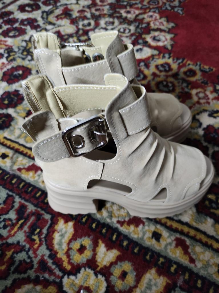 * Stylish Platform Sandals * 💥 Delivery time and scope of delivery The sandals arrived after only 10 days – a really good delivery time for an online order of this kind. The shoes are available in 3 different colors (Black, White, and a nice Khaki/Beige) as well as in sizes 37 to 39.. I ordered them in khaki/beige in shoe size 39 💥 Quality Visually, the sandals are an absolute highlight! The mix of the robust platform look, the stylish buckles, and the practical zipper at the back really makes a statement. The material looks high-quality and the workmanship appears solid.. An important point regarding the fit: The shoes run absolutely true to size. I tested size 39, and it corresponds exactly to this standard. Since I personally unfortunately needed a size larger, they were therefore a little too small for me – but anyone who knows their exact size can buy them here without hesitation. The shoes are comfortable and easy to put on and take off at the back with a zipper. The buckles can also be adjusted variably tighter or looser.. 💥 Conclusion An extremely cool, chunky summer shoe that instantly elevates any outfit! The design is modern and the comfort is promising thanks to the wedge sole. Anyone looking for a trendy companion for the summer and wearing one of the available sizes will get a lot of style for little money here. A great purchase if you choose the right size!