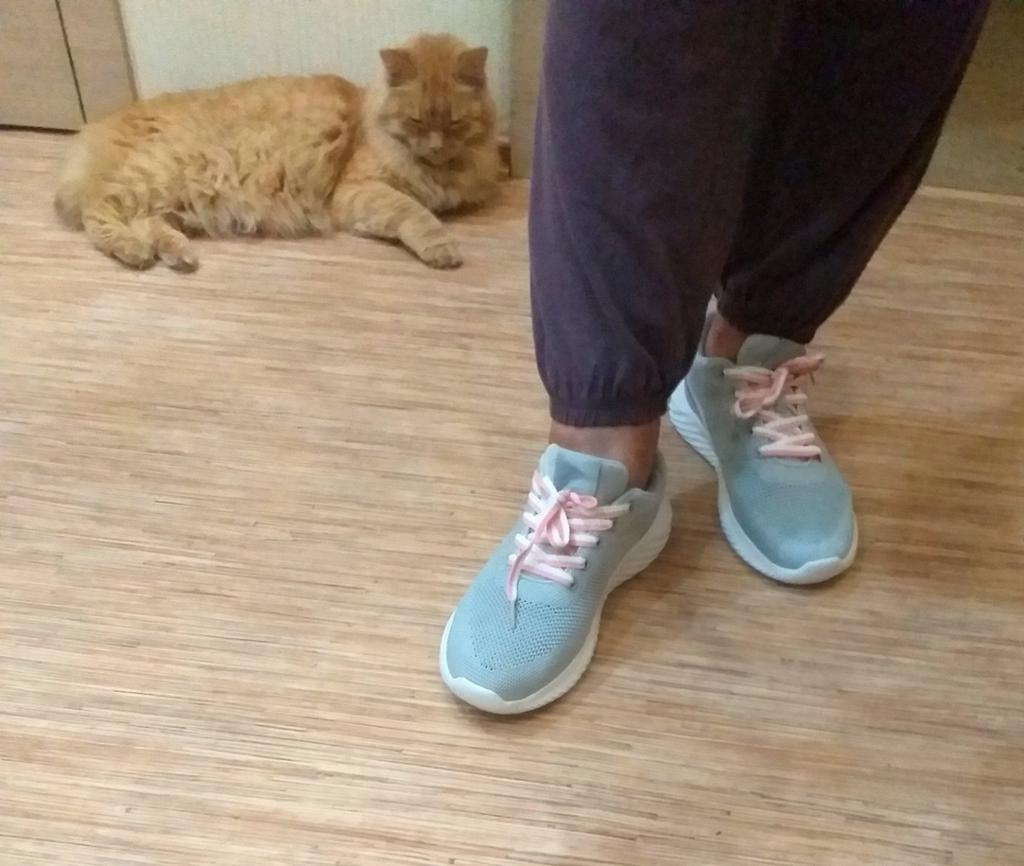 The sneakers are cute and light. But somehow it’s strange that the left leg is comfortable, the right one rests on the toe. The feet are the same and there are no such problems with other shoes.