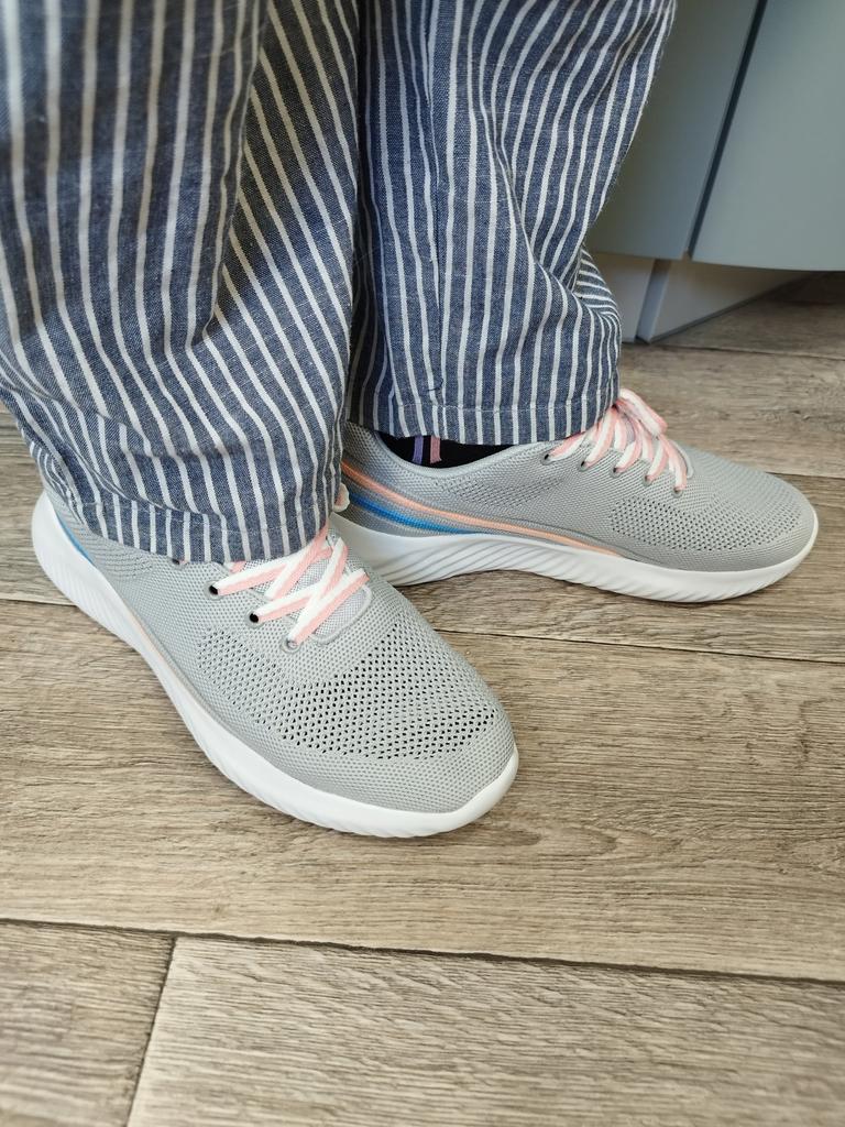Lightweight sneakers I took size 39 Perfect for a leg of 24 centimeters Fabric sneakers Lace-up sneakers The foam sole is very soft and easy to walk in such sneakers. Light on the leg, there is a little smell, but it weathers Delivery to Ukraine three weeks