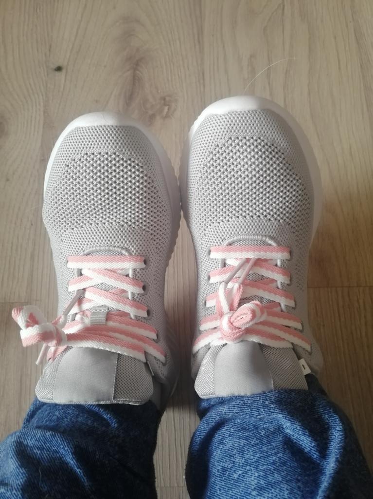 Very good quality sneakers, with a comfortable sole and good impact on each step, the gray color makes it combine well with any outfit, creating a feminine and youthful touch. When my daughter saw them she loved it. It also has small breathable holes that are ideal for when it is warmer so that the foot can breathe better. The lace straps are thick and resistant. Overall, the quality of these sneakers is very good and meets the seller's specifications and sizing measurements.