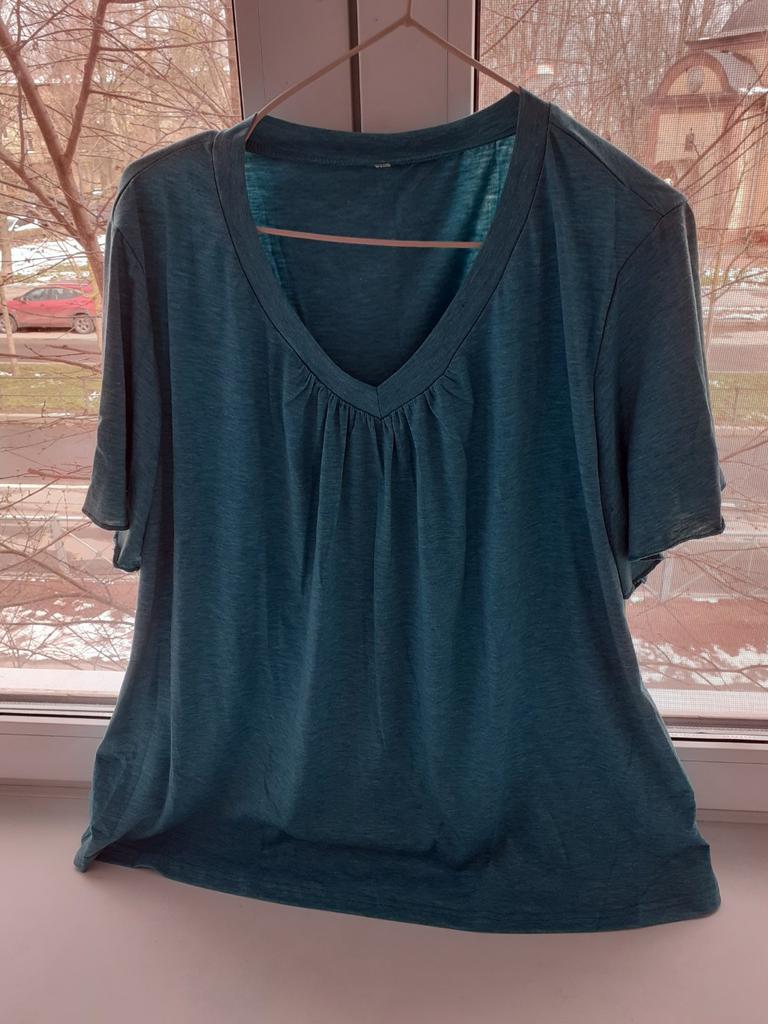 Summer Women's T-shirt Solid Color Pull-pleated V-neck Loose T-shirt Tops with Ruffled Sleeves