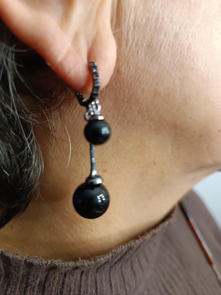 Korea Fashion Black Pearl Ball Drop Earrings for Women Crystal Dangle Earring Statement Goth Punk Party Jewelry Pendientes Mujer
