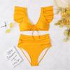S- XL Sexy Lace Up Ruffled High Waist Bikini Female Swimsuit Women Swimwear Two-pieces Bikini Set Bather Bathing Suit Swim