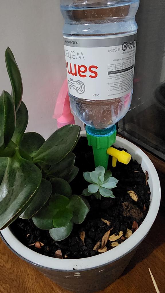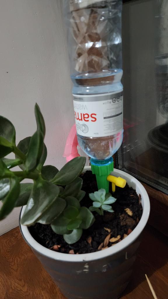 Went on vacation, set it up with bottles, adjusted, water either pours out quickly or doesn't flow at all, needs to be placed on a very hard surface, if the ground is soft, the dripper sinks completely under the weight of the water