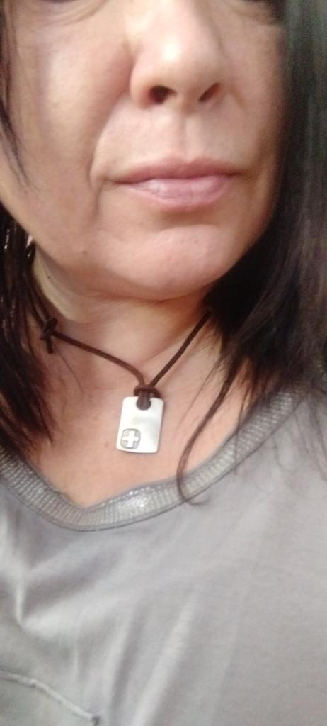 The leather cord is not the real thing. It's bad that the pendant is fixed