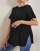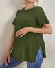 New Maternity Casual Solid Color Tops Hundred Round Neck Slit Maternity Wear Short-sleeved Tops