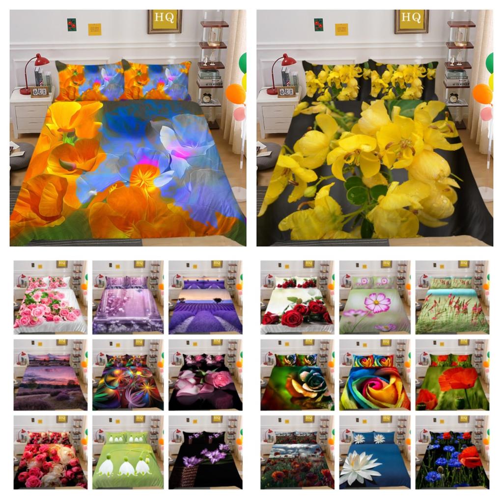 Flowers Printed Bed Clothes Double Size Polyester Bedspreads Gir Fashion High Ranking Home Bedclothes