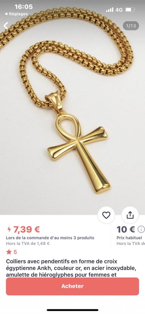 Egyptian Ankh Cross Necklaces Pendants Gold Color Stainless Steel Hieroglyphs Amulet Necklaces For Women Men Egypt Jewelry Gifts