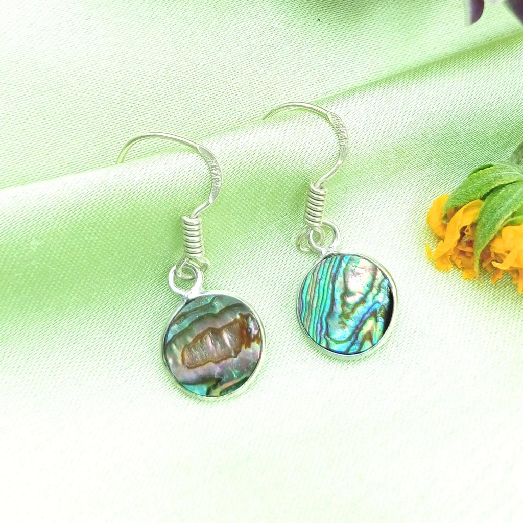 Abalone ShellGemstone 925 Sterling Silver Plated Hook Women's Earrings Jewelry WHE-E52