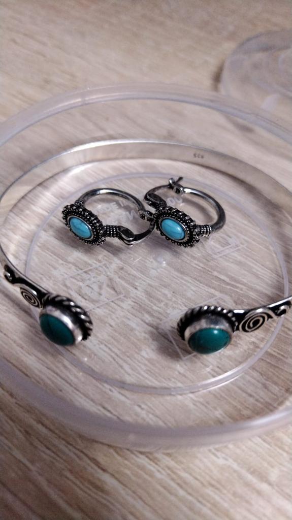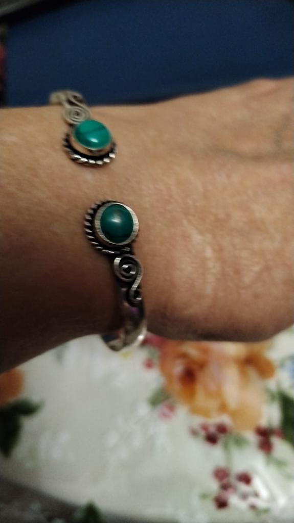 Turquoise Gemstone 925 Sterling Silver Plated Adjustbable Cuff Bangle FTRW-C103