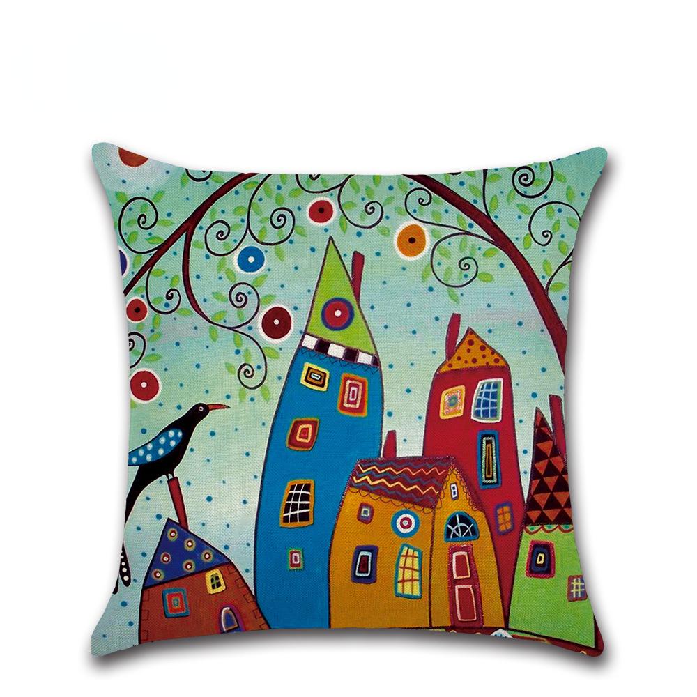 1 Pc Hand Painted Retro Rural Color City Cushion Cover Linen Decorative Cushion Car Home Decoration Pillow Case WBL