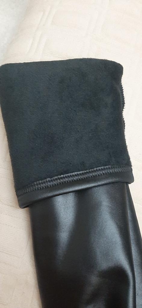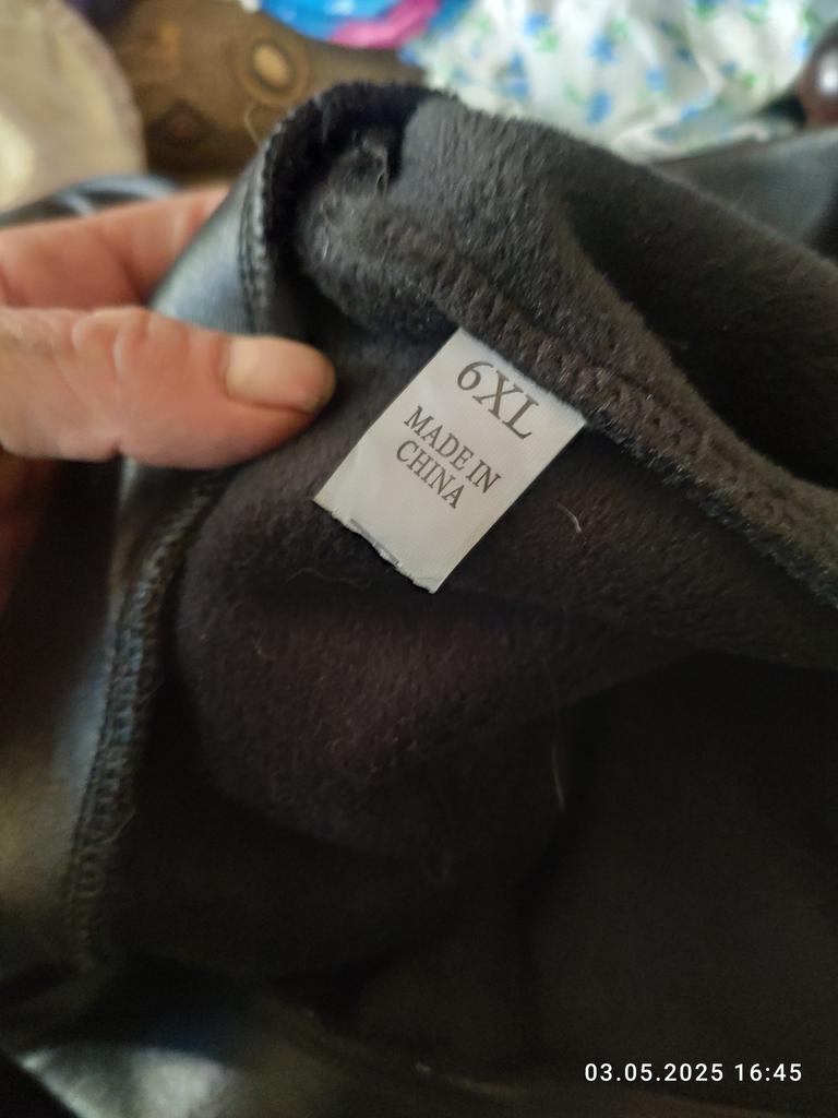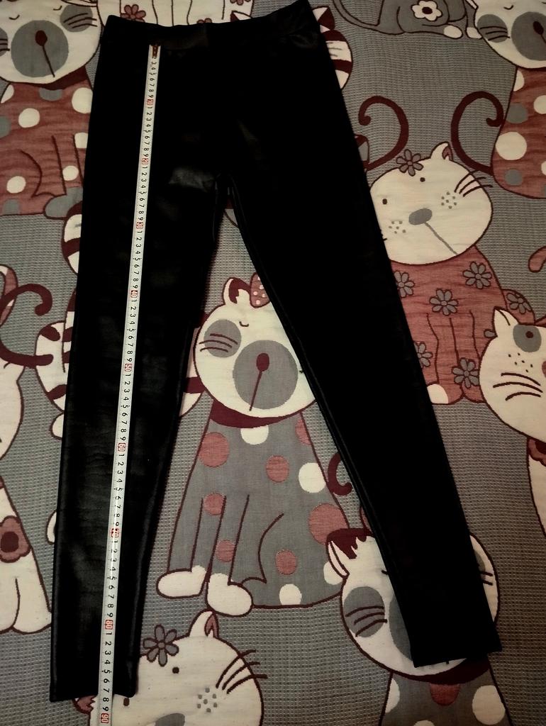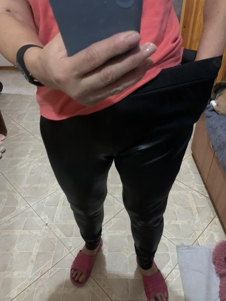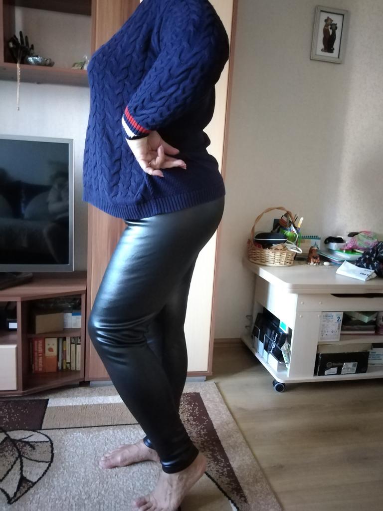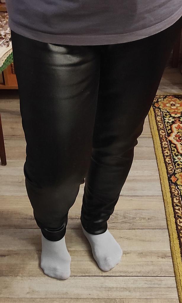 Probably the only good fleece-lined leggings, wide elastic waistband, outer part made of some artificial leather-like material, will probably peel and crack from washing, but overall, the price isn't high, and they look impressive, just right for size 60-62, thank you!
