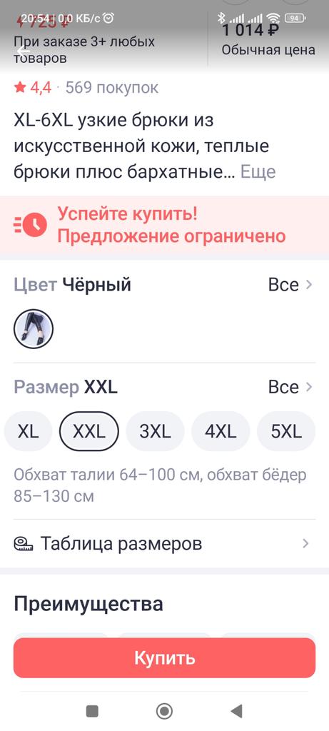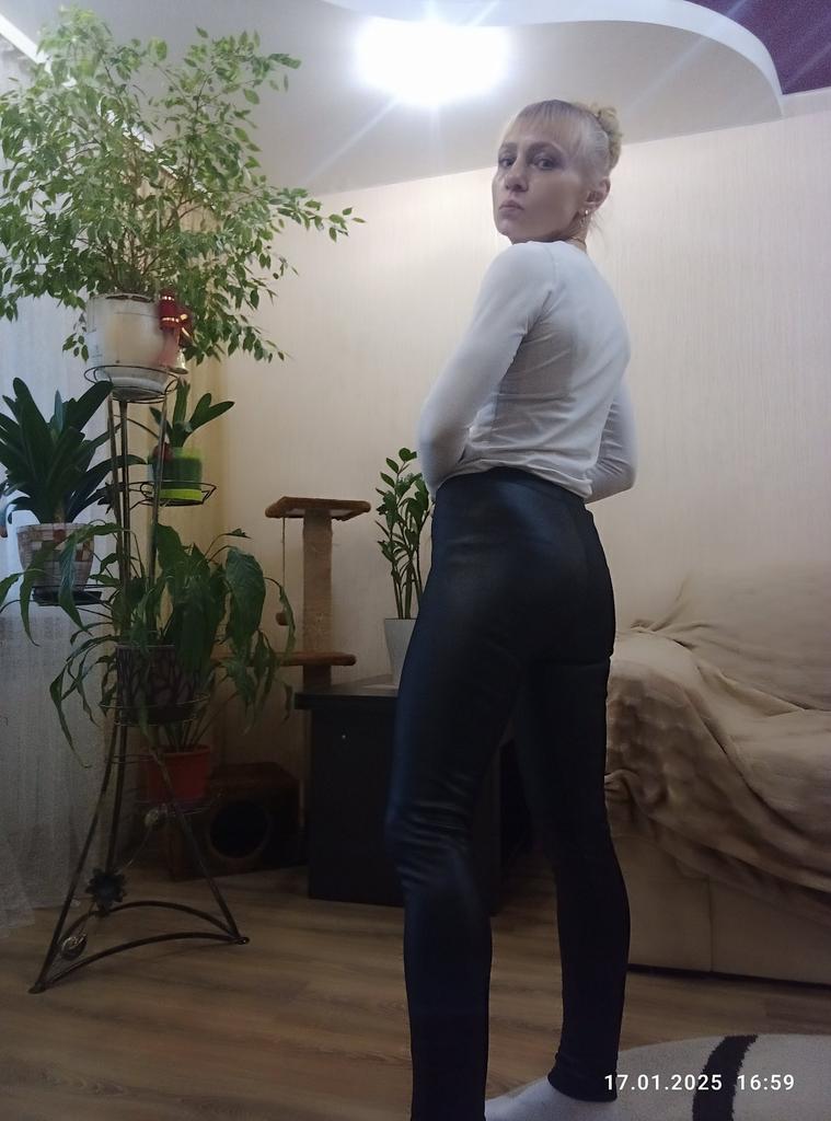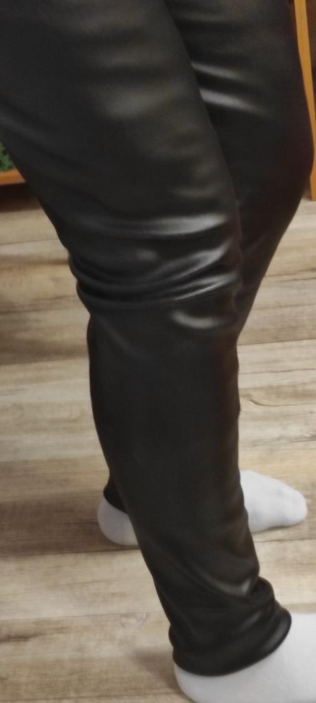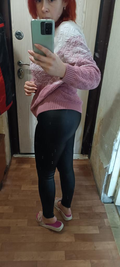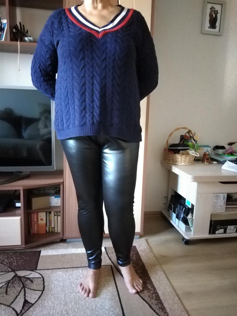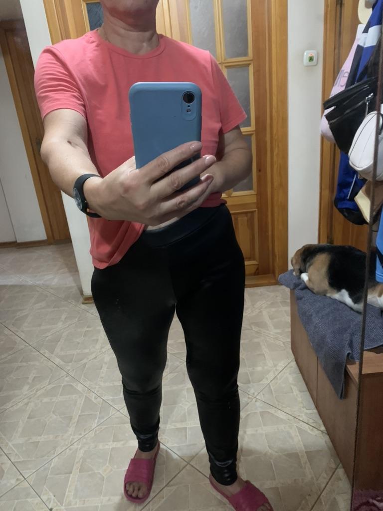 Probably the only good fleece-lined leggings, wide elastic waistband, outer part made of some artificial leather-like material, will probably peel and crack from washing, but overall, the price isn't high, and they look impressive, just right for size 60-62, thank you!
