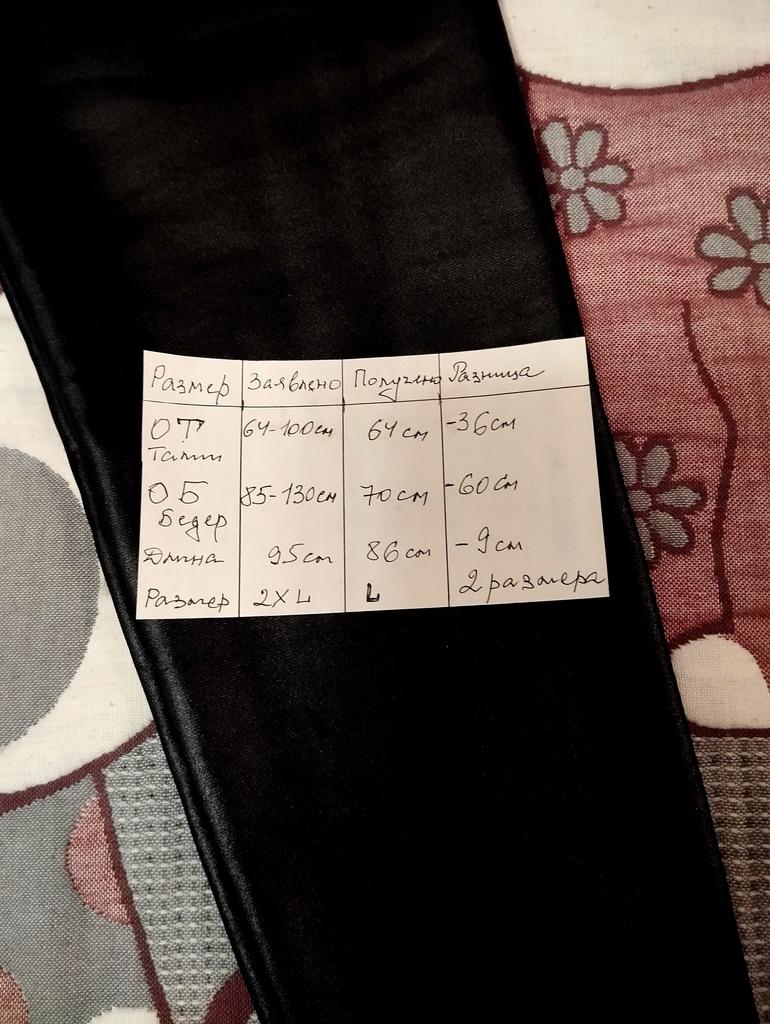 The order arrived assembled with the rest of the orders. On the package the size is indicated as XXL, on the leggings themselves there are no labels and who the manufacturer is. In this size it will fit size 40-42. Although they were supposed to stretch, but they don’t stretch. They tried to stretch it to size 44, but they started bursting at the seams. I think that they did not put 2xl but a smaller size. I will contact Customer Service. The seam at the top is cracked. Very tight.
