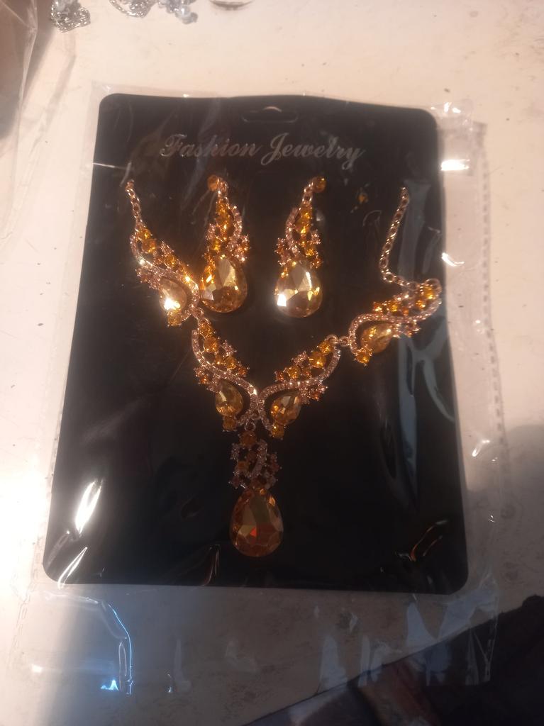 2Pcs/Set Diamonding Jewelry Luxury Full Crystal Stone Semicircle Charm Bridal Stud Earrings Necklace