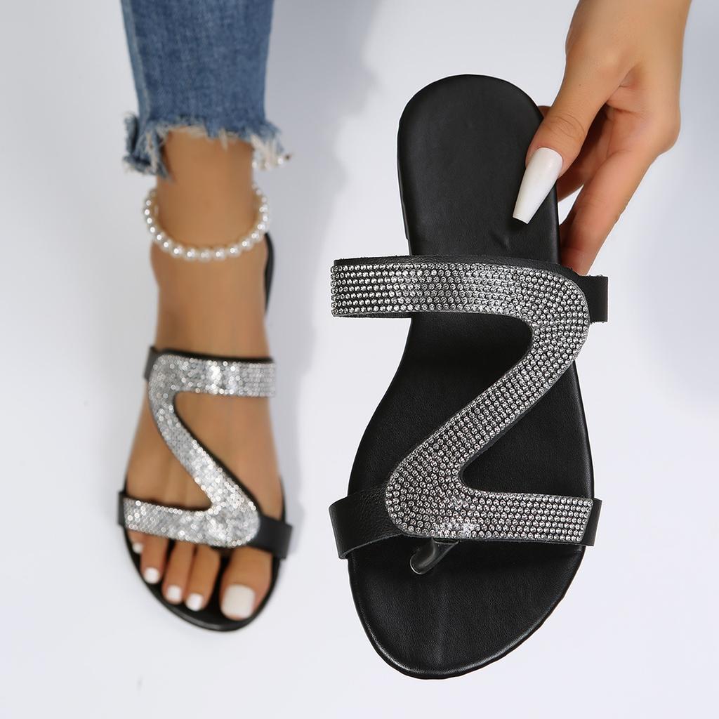 Women's Rhinestone Decor Slide Sandals, Bohemian Style Sandals, Flatform Open Toe Shoes