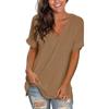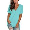 Women Fashion V-neck Loose Lengthen Cotton Casual Short Sleeves Crop Top Solid Color Simple T-shirt