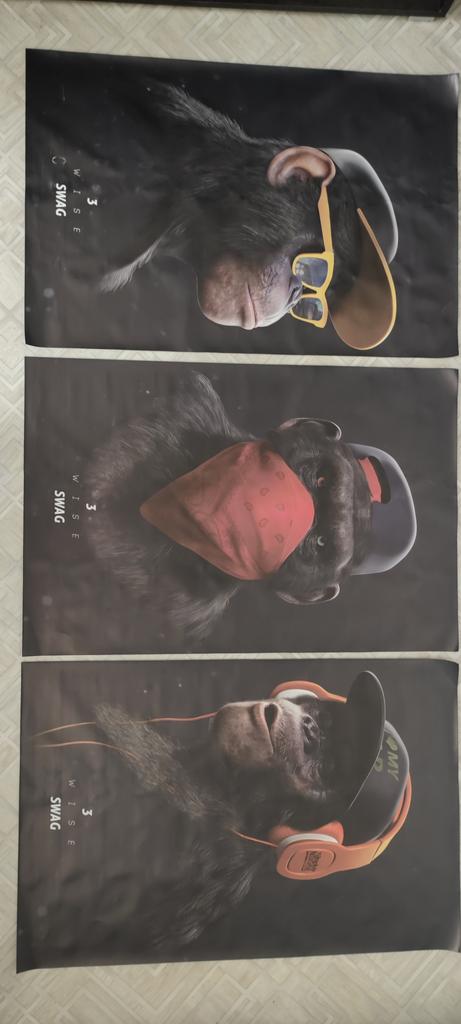 Three Cool Hip Hop Orangutans Canvas Painting Three Wise Swag Posters Listening To Music Monkeys Pictures for Home Decoration