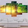 5 Panels Landscape Sunset Green Tree Forest Canvas Painting Posters and Prints Wall Art Pictures Living Room Home Decor No Frame