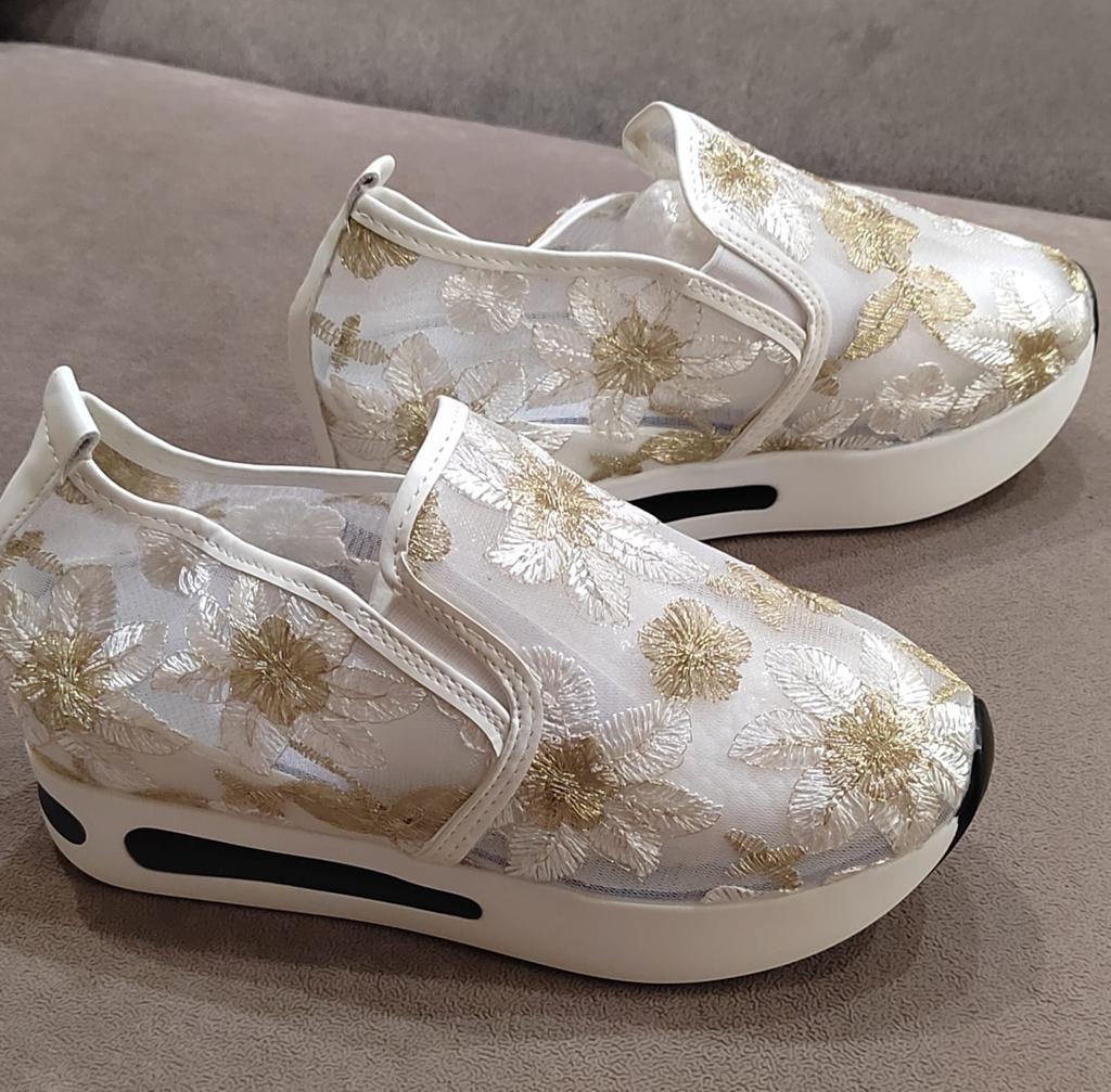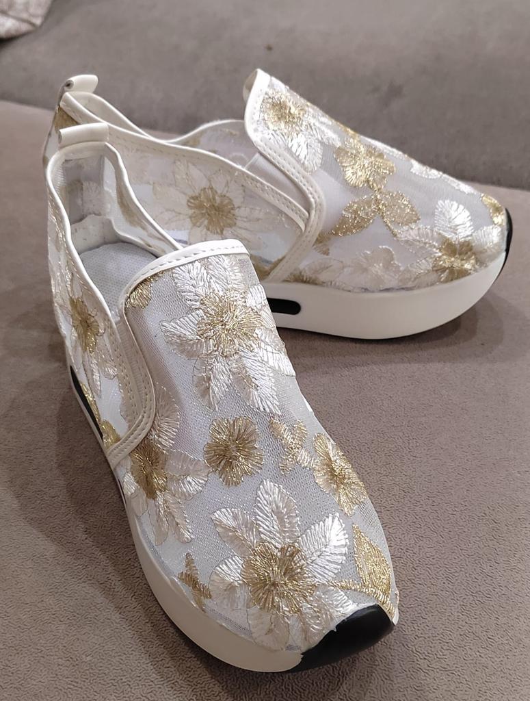 Women's Sneakers Floral Embroidery Mesh Sneakers for Women Slip On Casual Comfy Heeled Shoes Woman