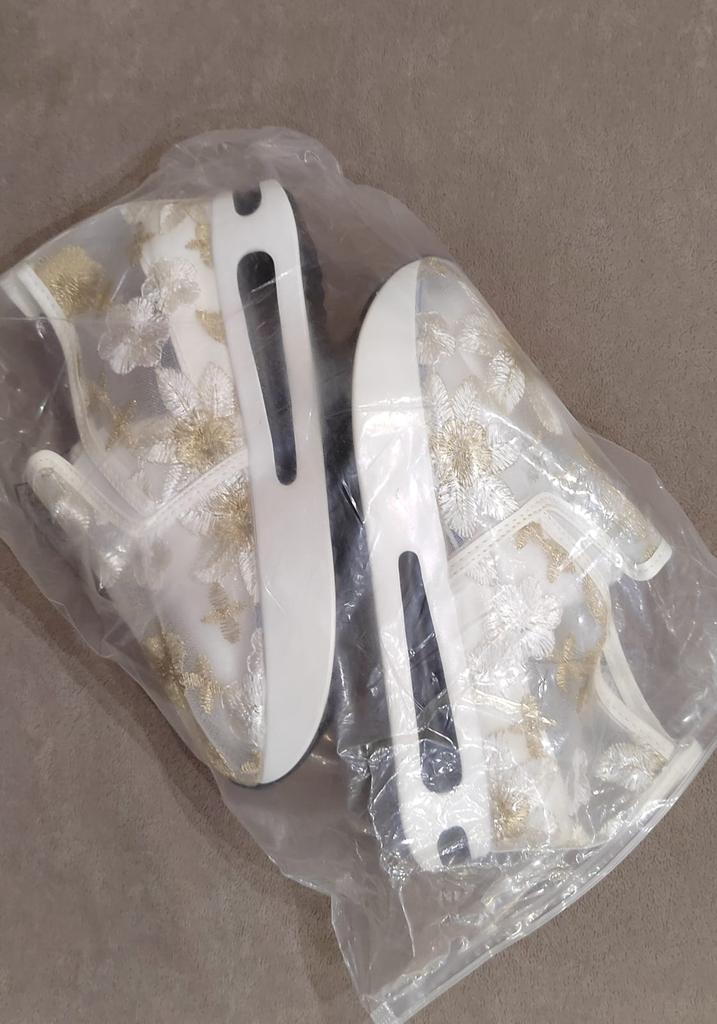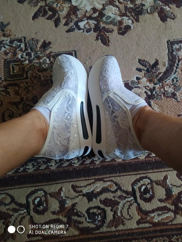 The sneakers are beautiful, light, but they are two sizes too small, although I ordered them according to the size chart on the website; inside there is a thin nylon mesh, without socks - they will rub (assumption)