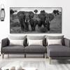 Black and White Animals Poster Print Wall Art Canvas Painting African Wild Elephant Family Picture On the Wall Home Decoration