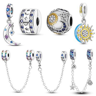 925 Sterling Silver Colorful Glowing Moon Stars Rainbow Dangle Charms Beads Fit Bracelet Necklace Jewelry Women