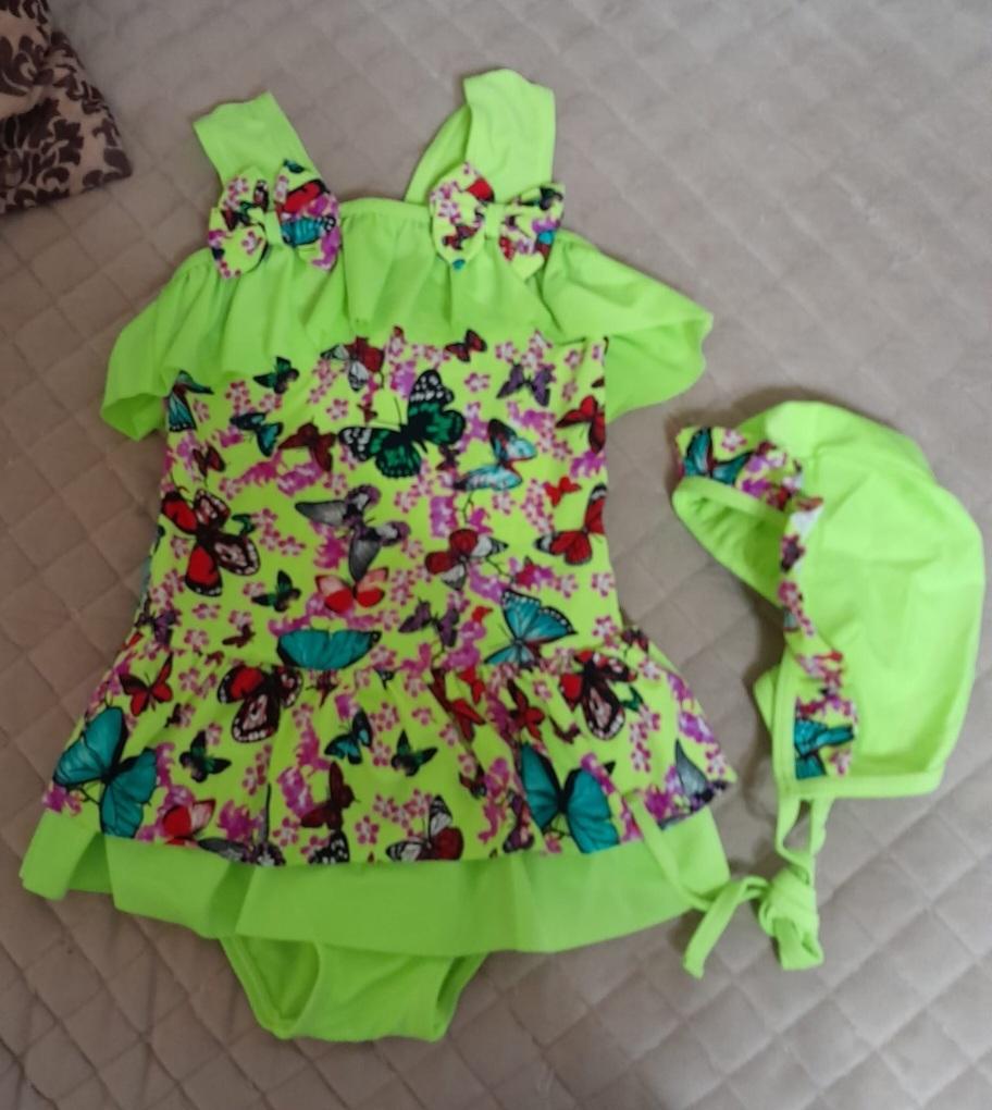 Girls Swimwear Summer Cute Children Girls One-piece Dress Swimsuit Kids Bathing Suit Swimwear Hat Sets