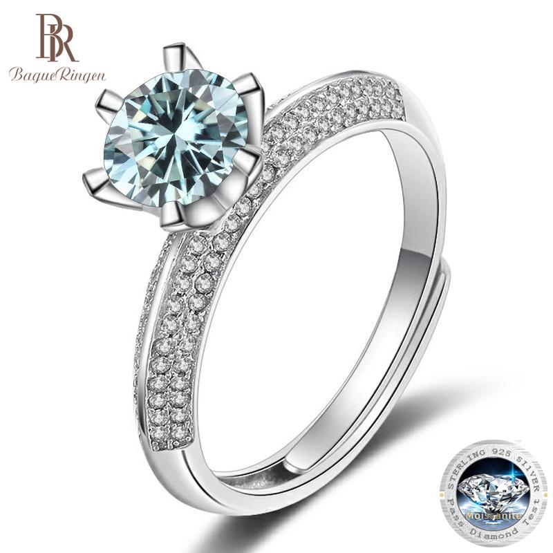 Bague Ringen Luxury D Color 1 Carat Moissanite Diamond Ring Female S925 Sterling Silver Fine Jewelry For Wedding Adjustable Size