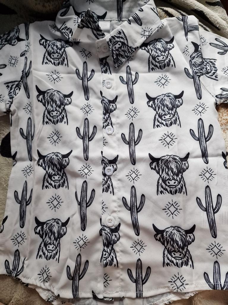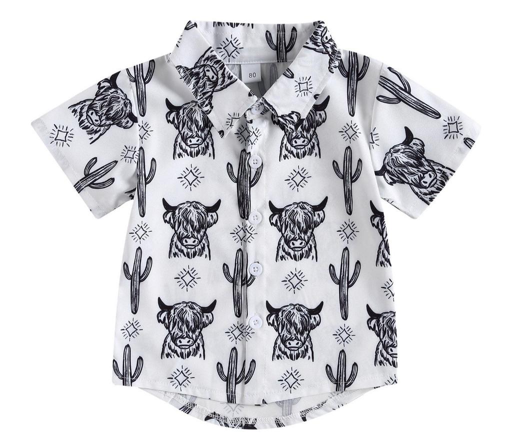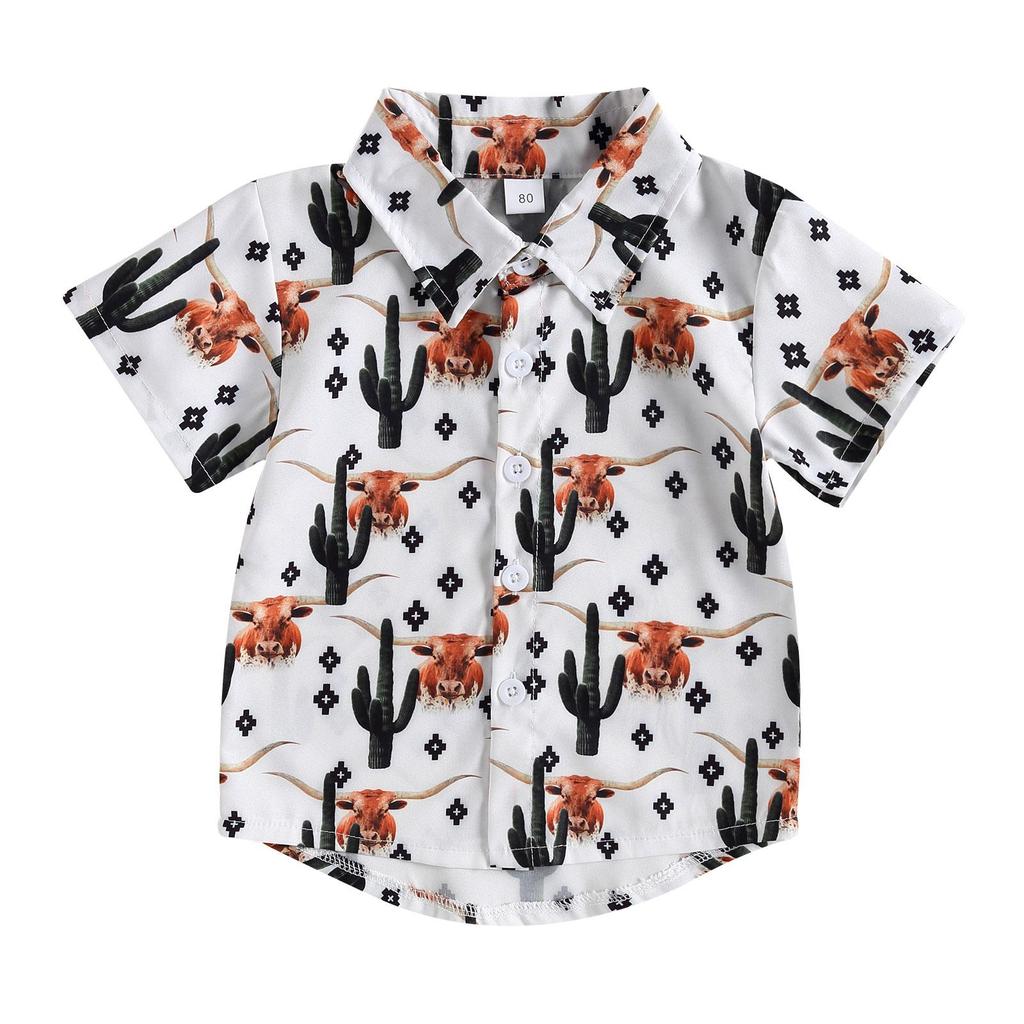 Summer Baby Boys Shirts Cattle Cactus Graphic Print Short Sleeve Button Shirts For Kids Blouse Tops Children Clothing