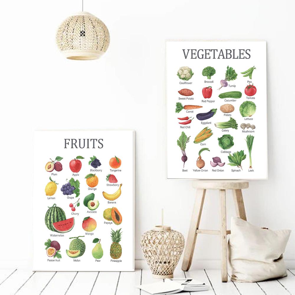 Watercolor Educational Vegetables Fruit Farm Chart Posters Learning Preschool Wall Art Canvas Paiting Pictures For Nusery Decor