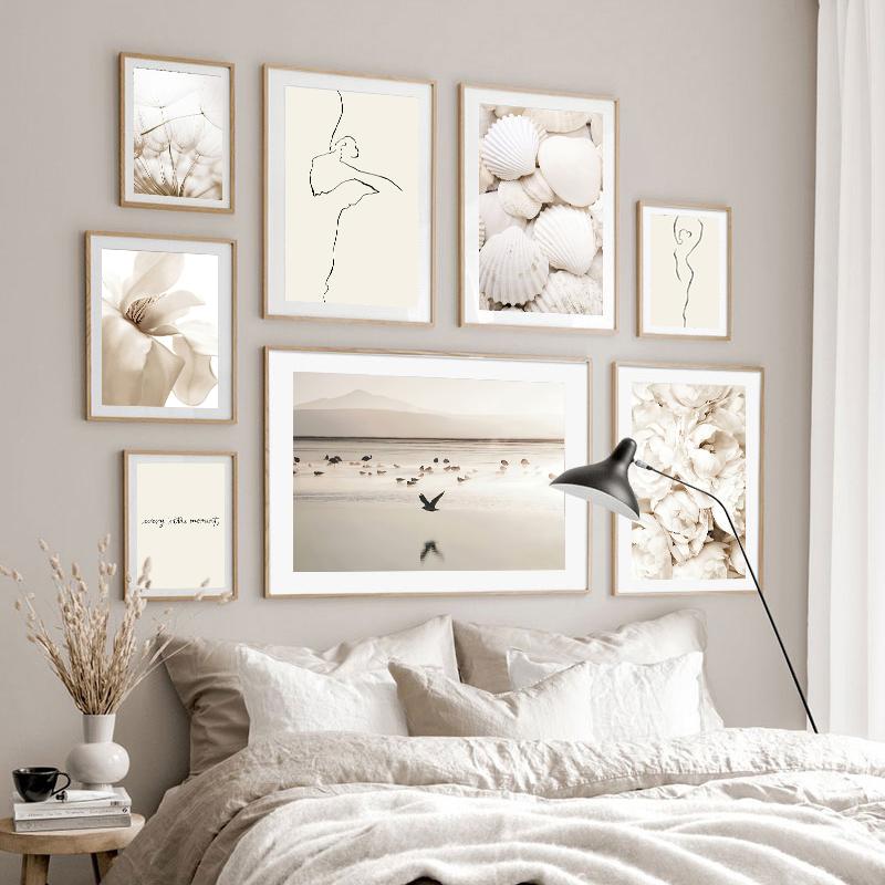 Beach Shell Flowers Poster Landscape Wall Art Canvas Painting Woman Line Nordic Print Modern Picture Living Room Home Decoration