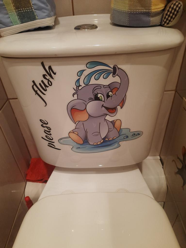 Toilet Sticker Cartoon Elephant Pattern Wall Tile Sticker Decal Self-adhesive Waterproof Bathroom Toilet Wall Decal for Home Decor