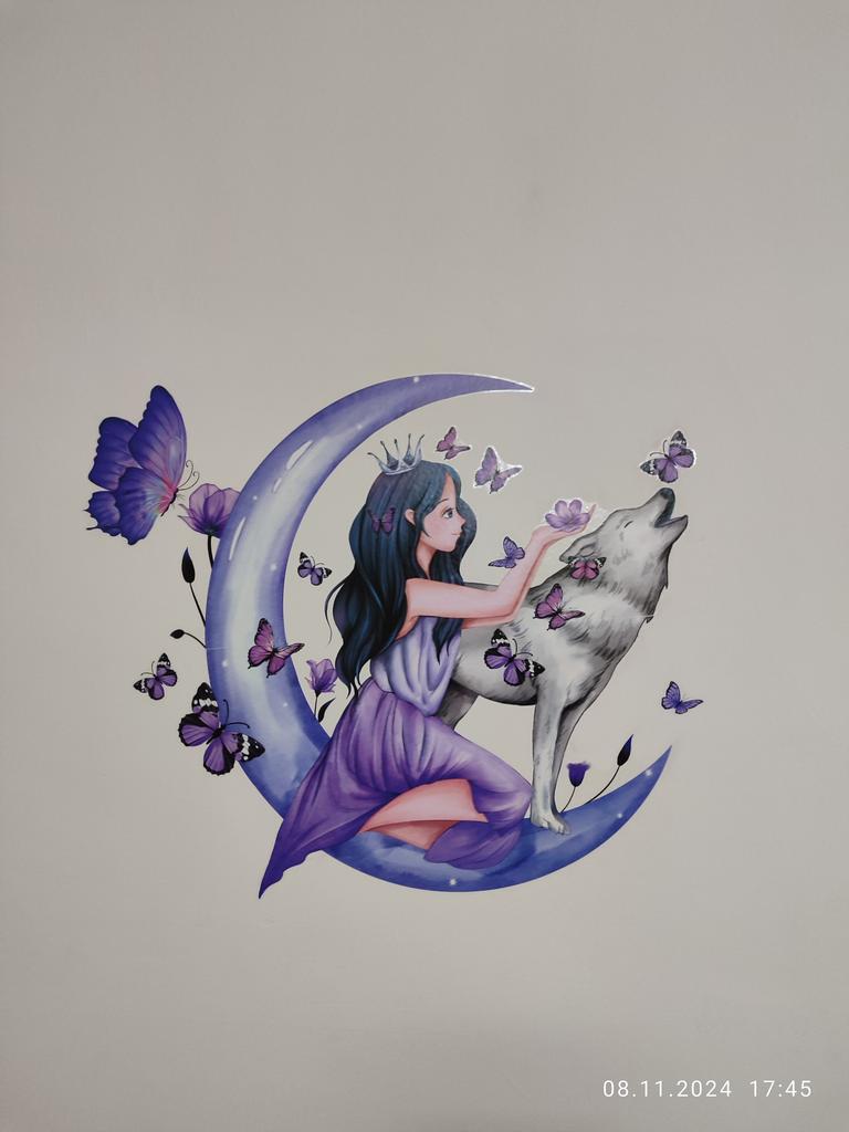 2Pcs/Set Exquisite Wall Art Sticker Detachable Modern Girl Seat On Moon Pattern Wall Stickers