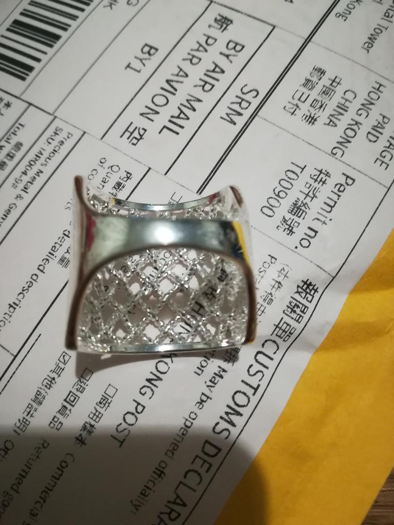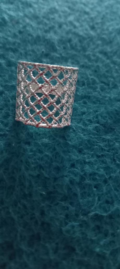 925 Sterling Silver Mesh Square Ring Charm Jewelry