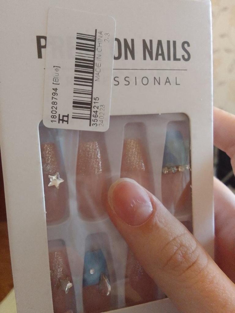 perfect size nails were found on my thin fingers and plate, very nice nails, they hold well, but with such a length, it's a little difficult. the seller gave glue for them and nail stickers!