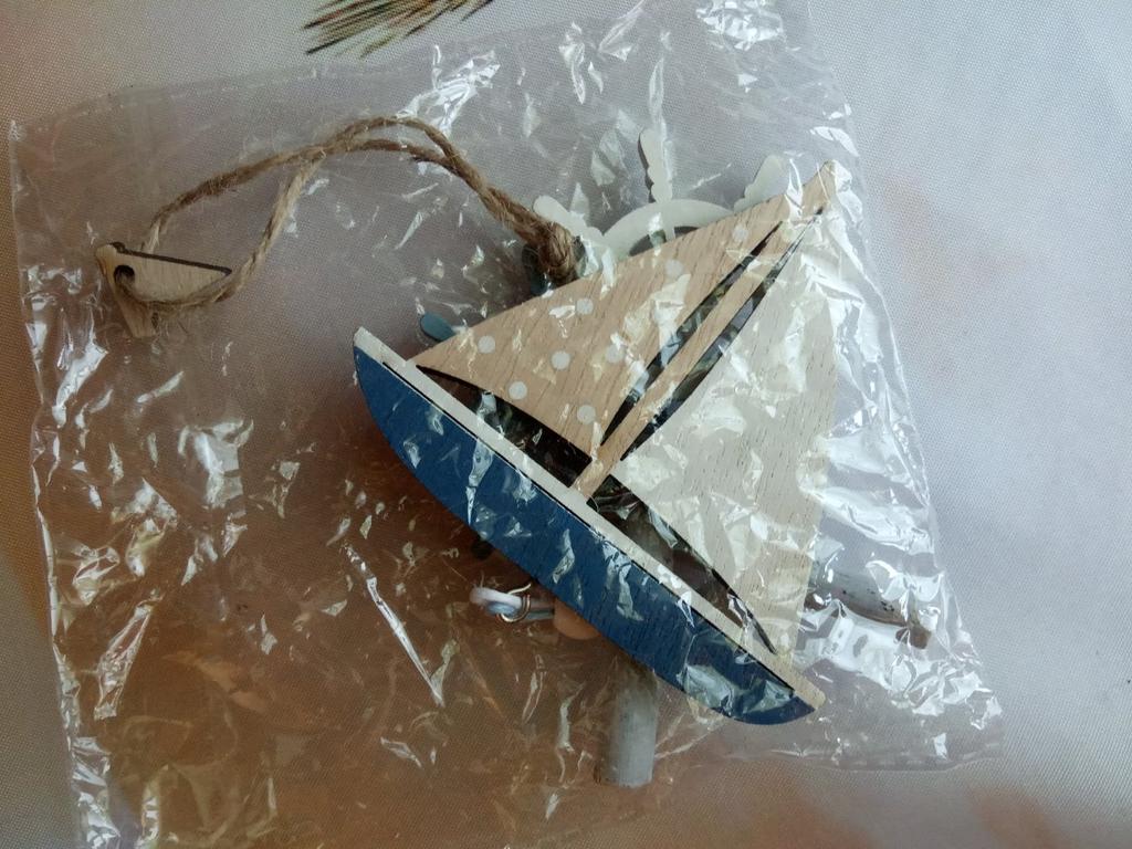Wooden pendant, light, beautiful. The boat is painted only on the front side.