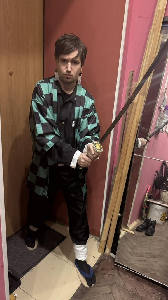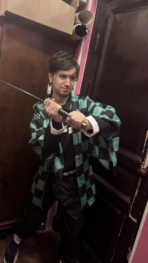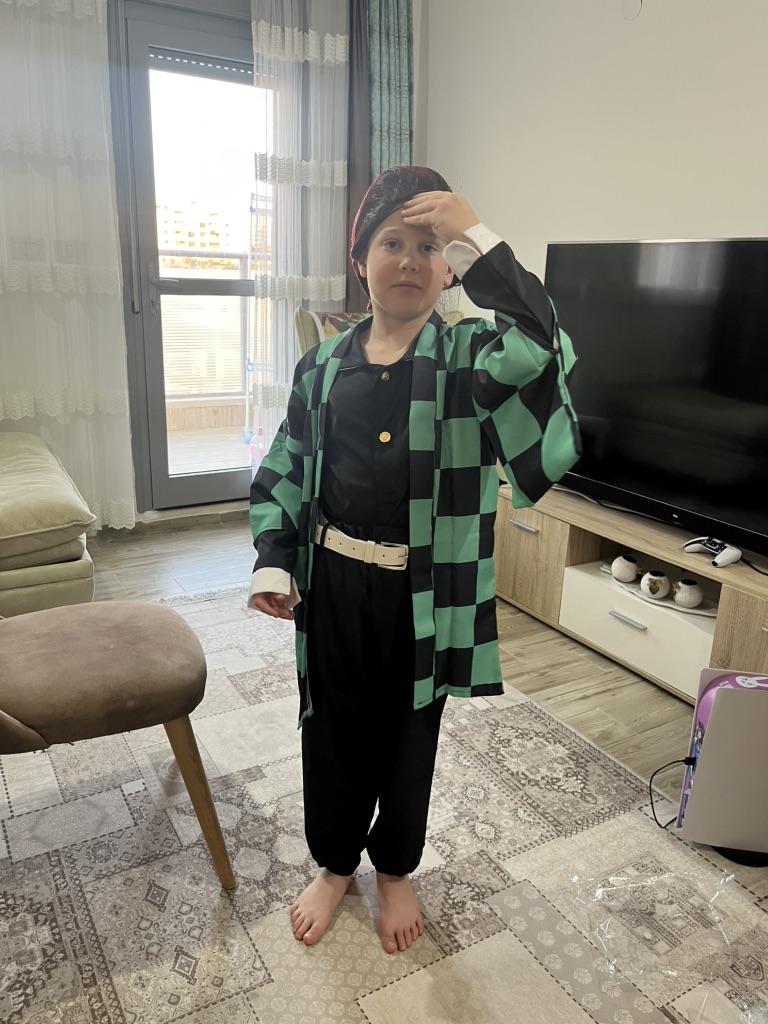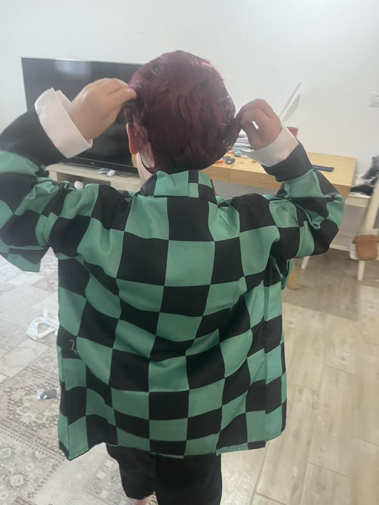 Anime Demon Slayer: Tanjiro Kamado Yaiba Kimono Top Fancy Suit Halloween Cosplay Costume