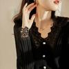 Casual Pullover Lace Blouse Women Autumn Slim V-Neck Hollow Elegant Blouses Office Lady Beading Shirt Women Clothing 23975
