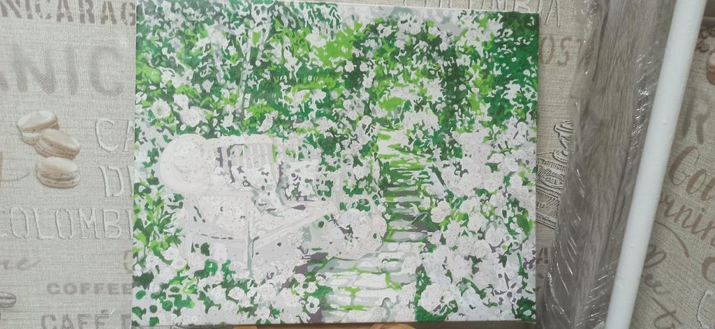 I am in complete shock, very good quality, I painted it in one breath in three days. A big plus is that there was also a wooden frame for stretching the canvas, buttons. Thank you.