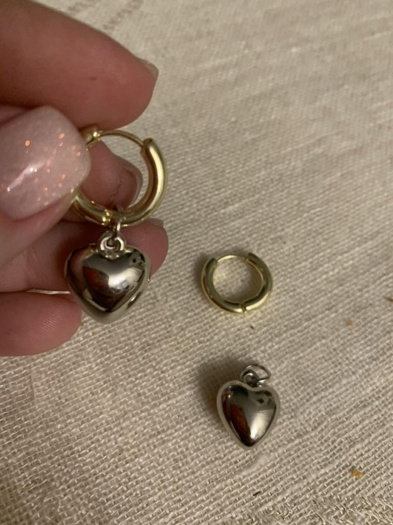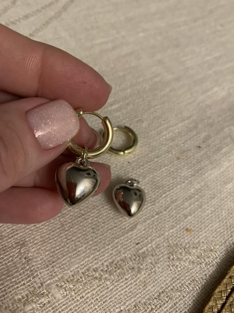 As in the description, light, the heart can be removed. On one earring the clasp was very difficult to open, but after the first opening everything is fine