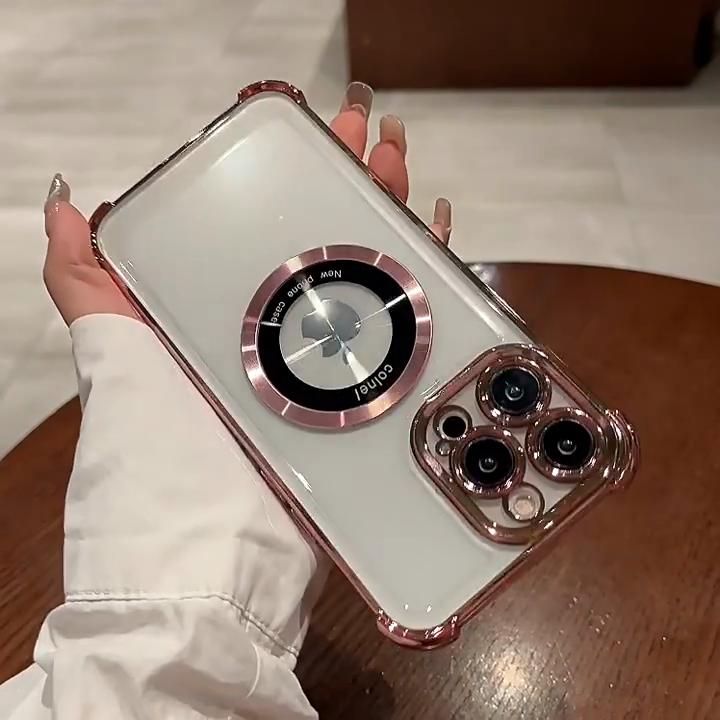 Luxury Plating Transparent For Magsafe Magnetic Case For iPhone 14 13 12 11 Pro Max 14Pro Shockproof Corners Clear Acrylic Cover