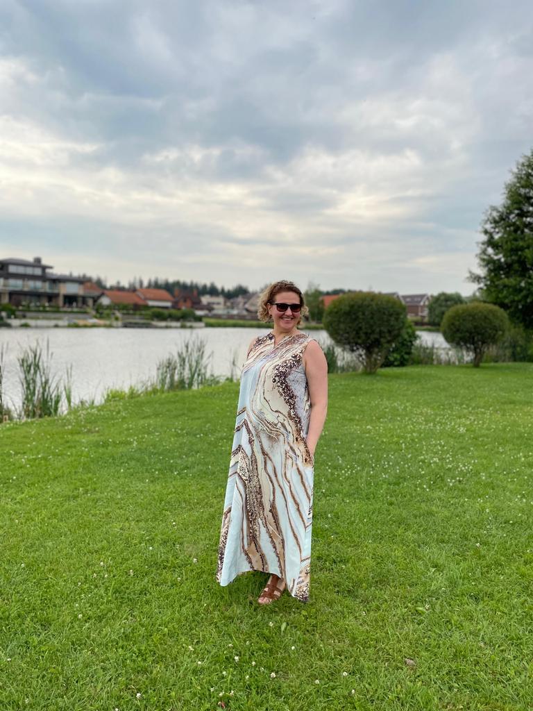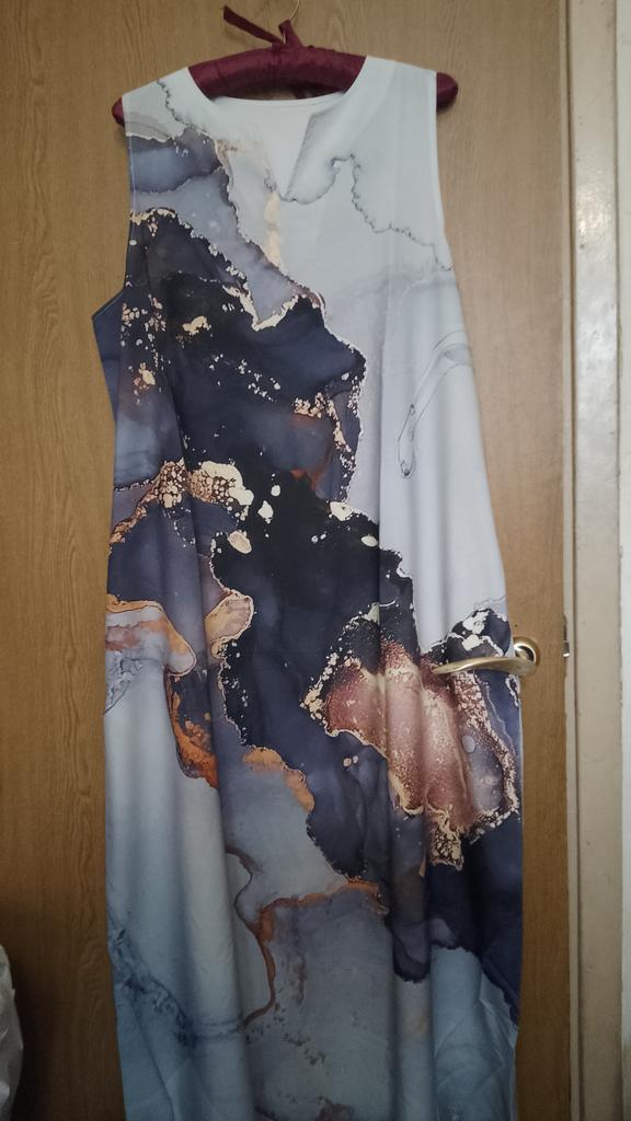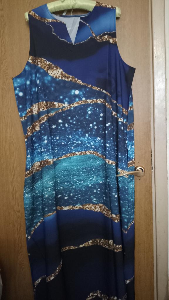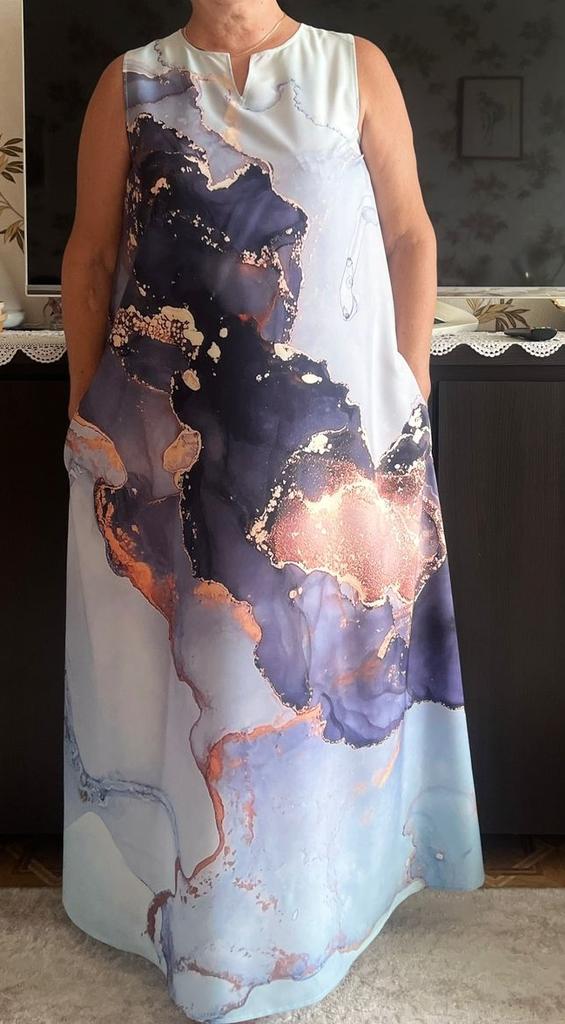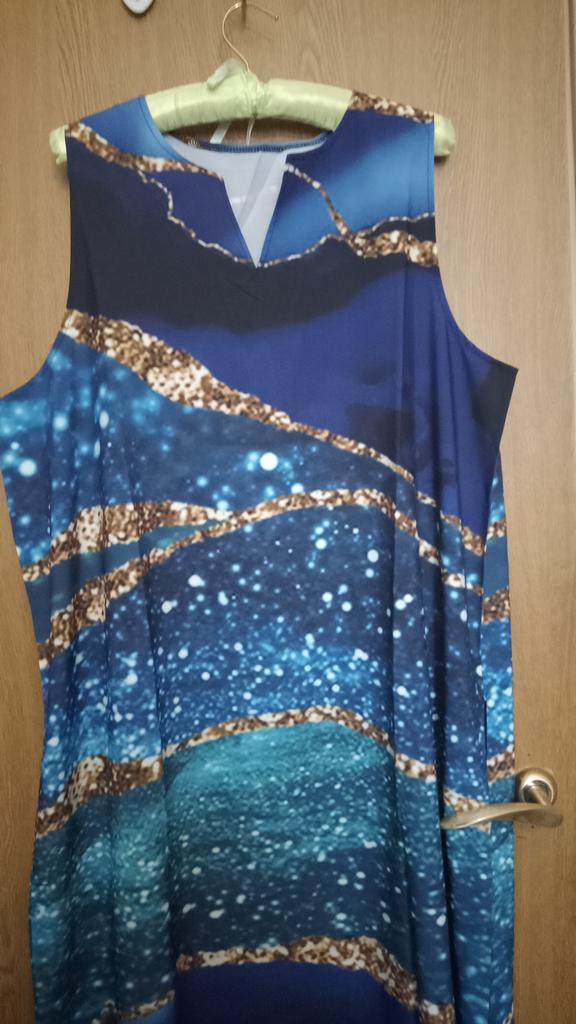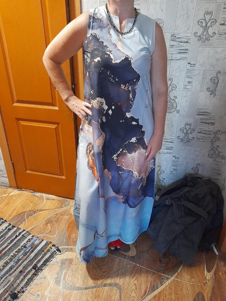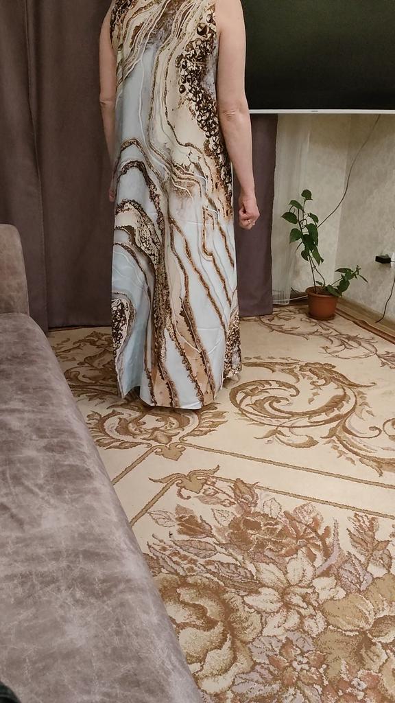 In the photo, the dress is a holiday dress, but what arrived was... a simple dress for home, just fabric with a pattern, a sack-like style with pockets. And after this dress, I won't be ordering other holiday dresses - the same sack will arrive, and I warn you, there are no returns.