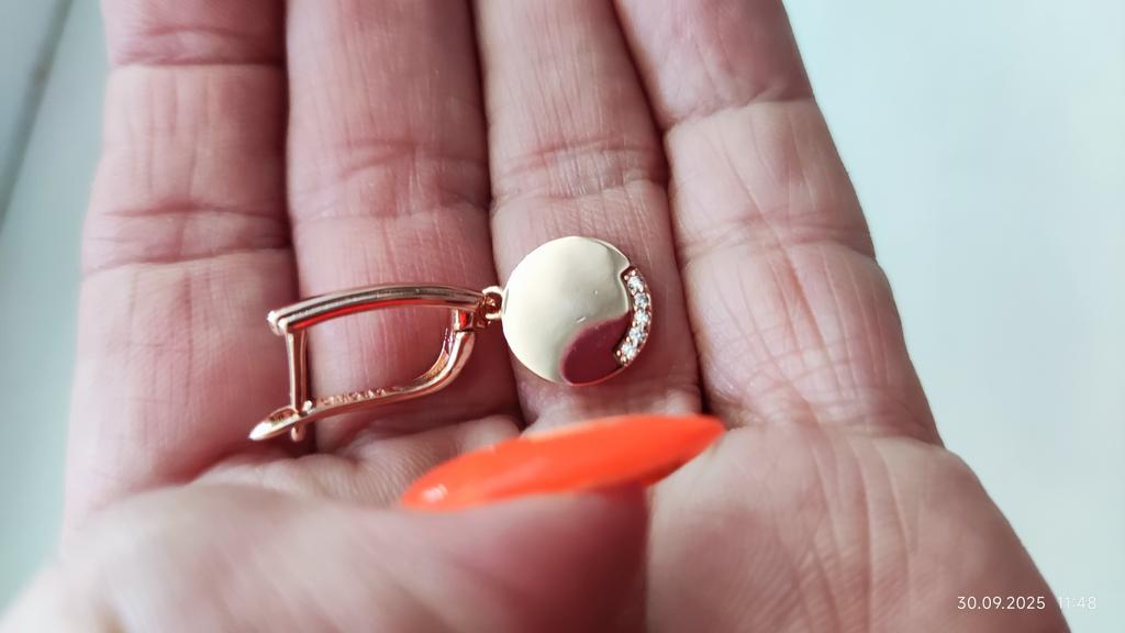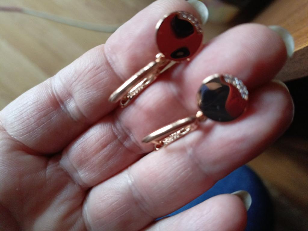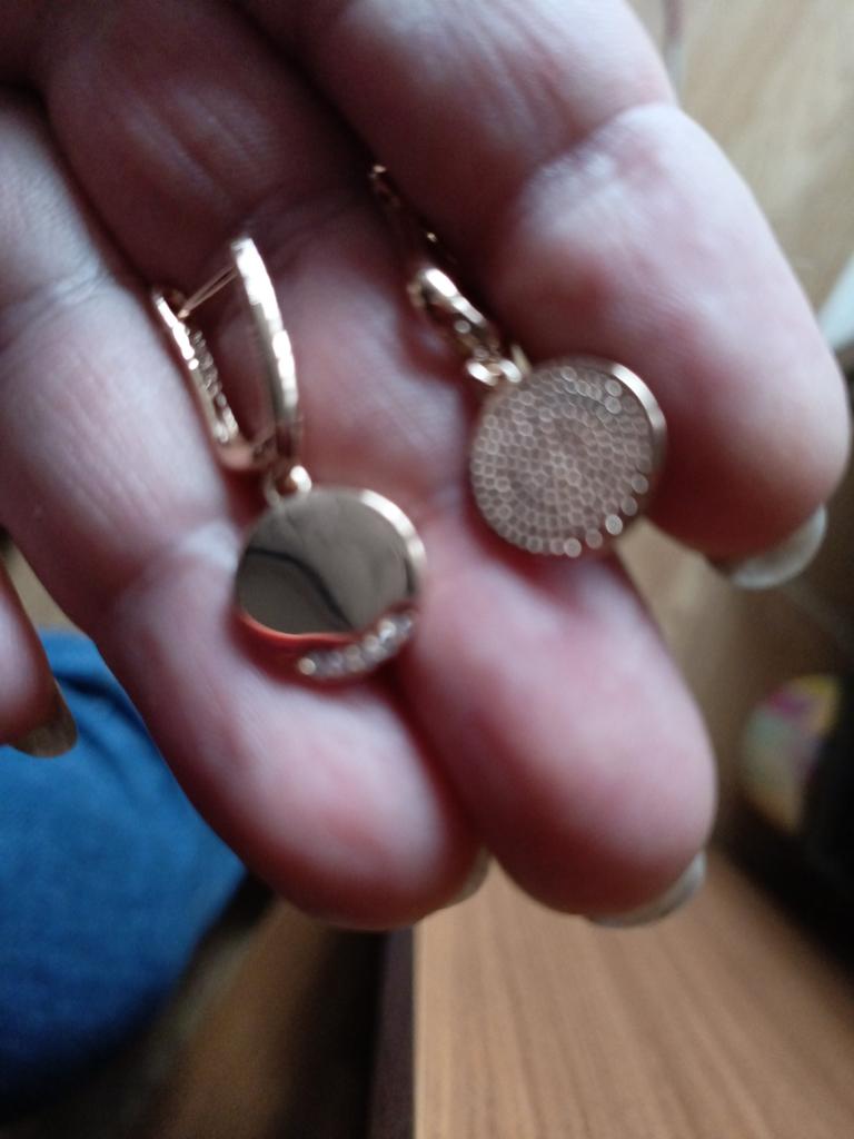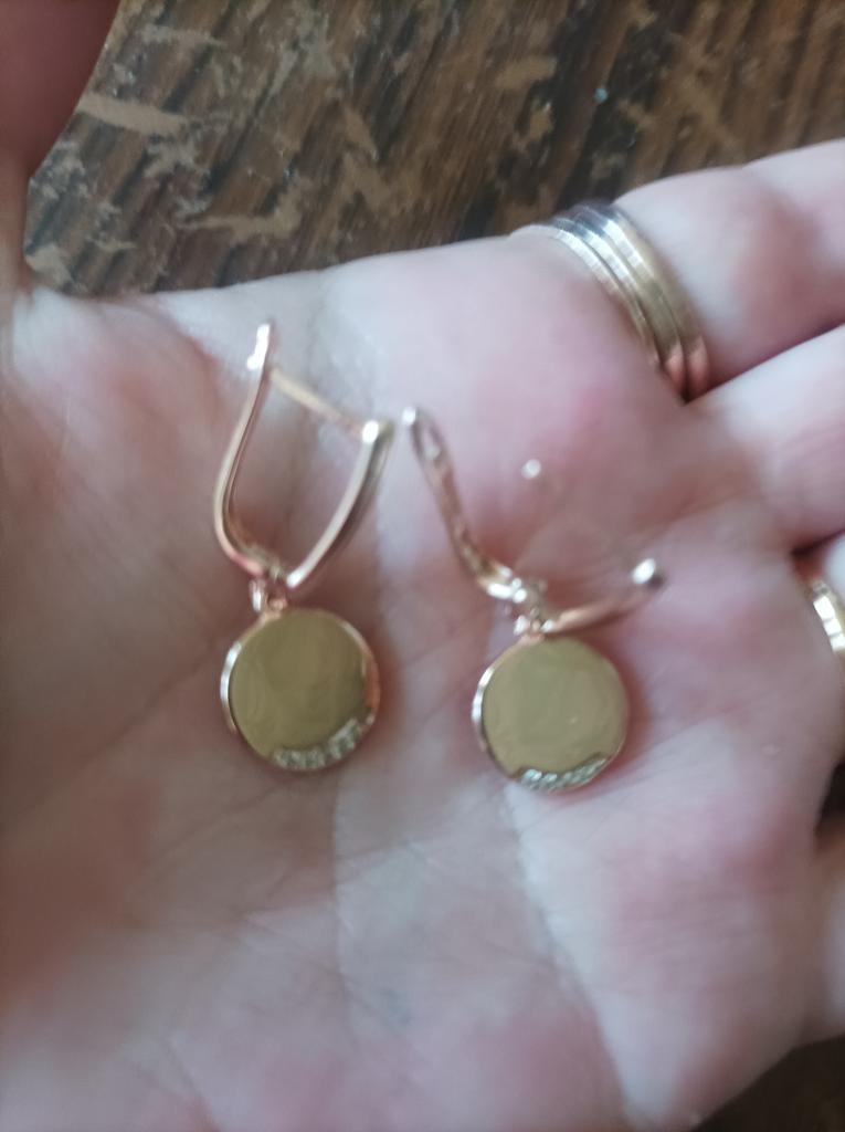 I liked the earrings very much, although they came with defects - the pendant plate is not flat, as in the photo, but bent and there is a scratch on one earring. I thought it was glue, took it out, it got worse. I am ordering another pair so that the pair has an earring without scratches, the price is low and I really like them, I will try them...)