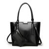 2 Pcs Set Women Casual Tote High Quality Oil Wax Soft Leather Elegant Offcie Handbag and Purses Retro Black Luxury Bag 2022 New