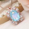 Fashion Rectangle Crystal Pendant Necklace For Women Rose Gold Color Wedding Cubic Zirconia Jewelry Gift