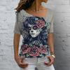 Women's T Shirt Vintage Skull 3D Printed V-neck Blouses Casual Short Sleeve Pullover Tops Summer Oversized Harajuku Clothes Tees