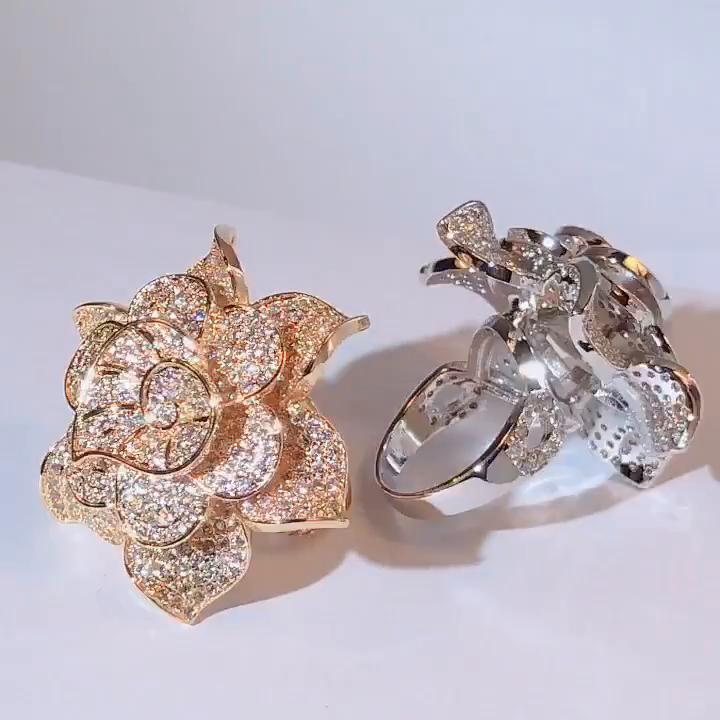 CMM Yellow Gold Color Luxury Cubic Zirconia Big Geometric Flower Wedding Party Rings for Women