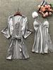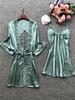 MAITA Sexy Sling Pajamas In Spring, Women's Nightgown with Chest Pad, Ice Silk Long-sleeved Pajamas, Two-piece Suit, Home Clothes