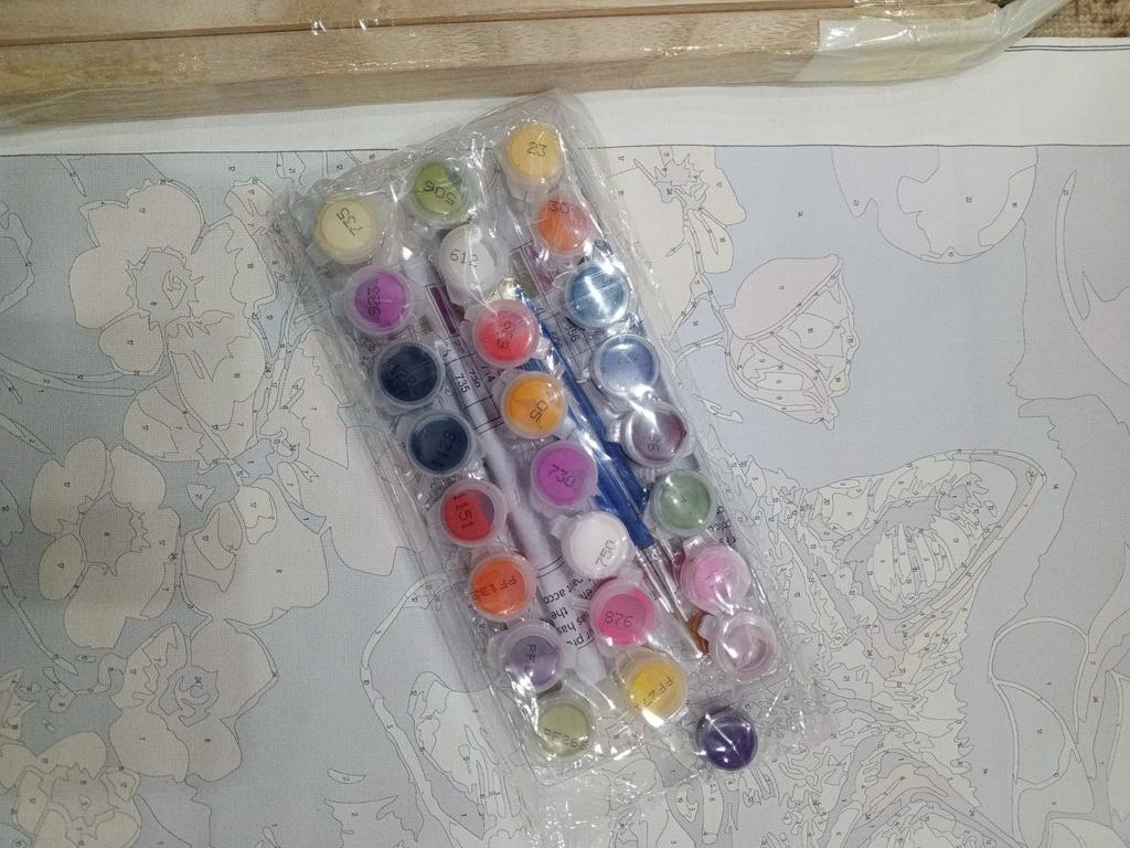 Fast delivery and well packaged. Lots of beautiful colors to paint and the matching frame that is simply put together.